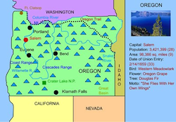 >Oregon, located in the Pacific Northwest, is a state of breathtaking natural beauty and diverse landscapes. From the rugged Pacific coastline to the towering Cascade Mountains and the high desert plains of the east, Oregon offers an incredible variety of scenery. Its largest city, Portland, is known for its creative spirit, green spaces, and strong commitment to sustainability. The state capital, Salem, lies in the fertile Willamette Valley, an area famous for its agriculture and world-class vineyards.
