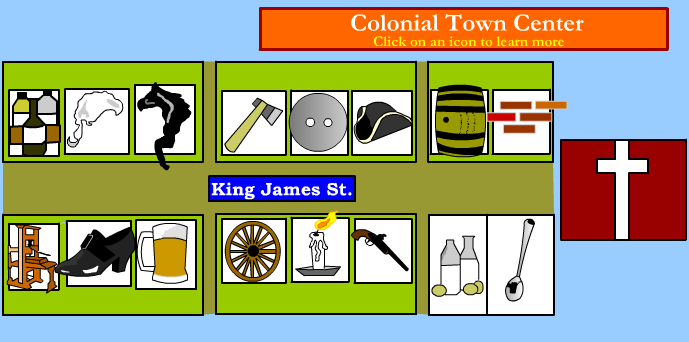 Welcome to our Colonial Artisans and Trade Village! Explore a virtual town where you can click and learn about the skilled tradespeople who helped build daily life in the 13 Colonies. Discover how blacksmiths, coopers, printers, and more shaped the economy and community of early America.